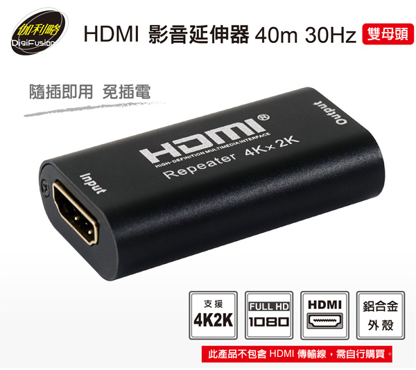 伽利略 HDMI【40米30Hz(雙母頭)】影音延伸器 HDRP40