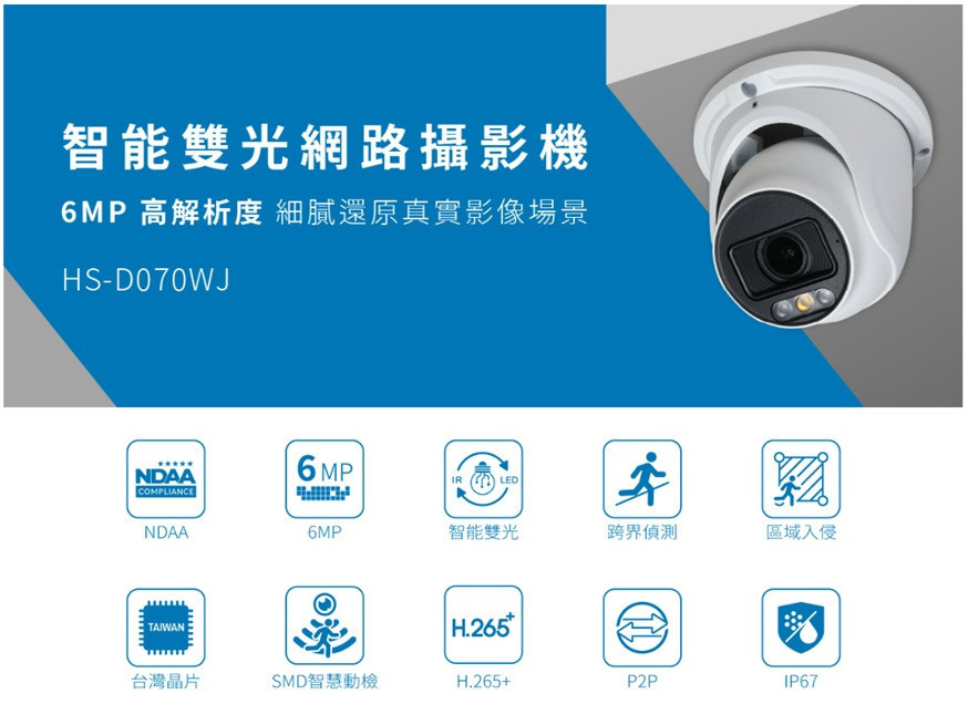 【HISHARP 昇銳 6MP 電動變焦 AI 網路球型攝影機 HS-D070WJ】