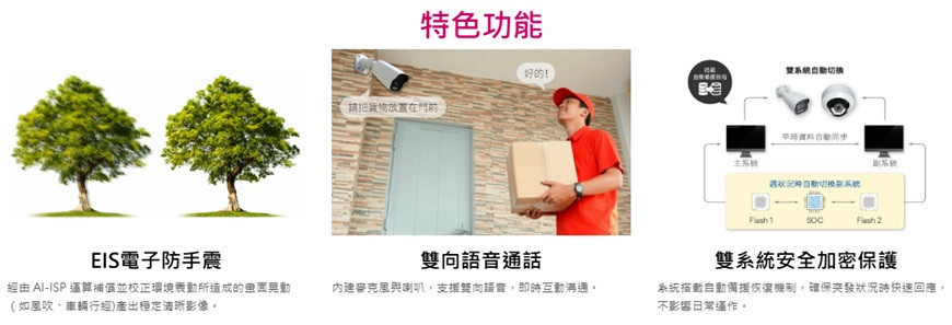 - 120dB WDR+3D DNR+數位除霧 逆光、夜間與雨霧環境,畫面更清楚穩定。