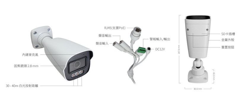 - 4MP 高解析影像(2688×1520) 影像細節清晰,適合商用監控與辨識需求。